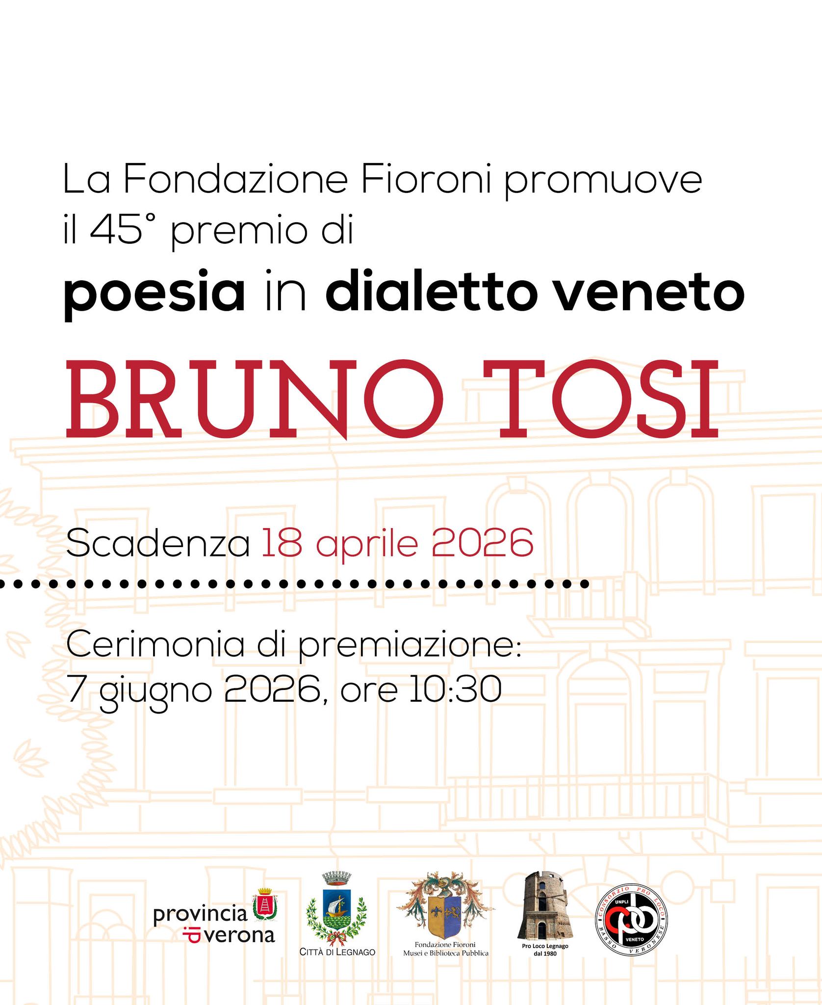 Tutti i concorrenti sono invitati alla Cerimonia di Premiazione, che avrà luogo domenica 7 giugno 2026 alle ore 10.30, presso la Casa Museo della Fondazione Fioroni (via G. Matteotti, 39, Legnago).
