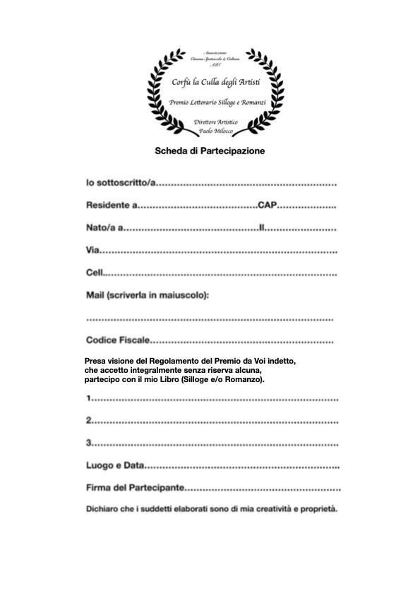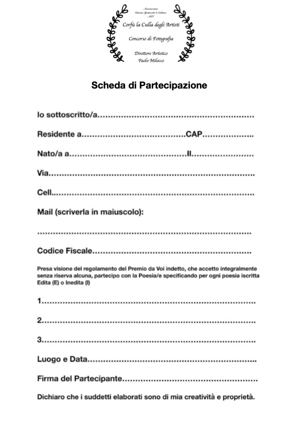 Alle poesie da inviare in un unico file di testo (Word o Pages, carattere Time New Roman, corpo 15/16), dovranno essere allegati: