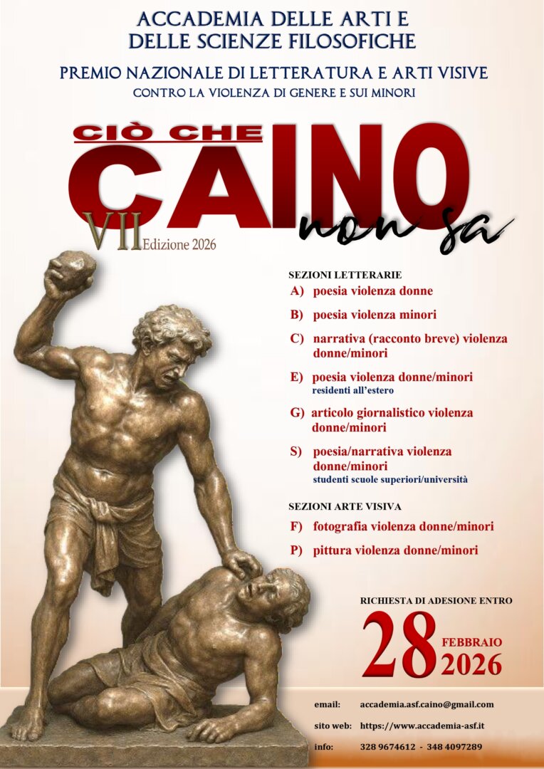 II verbale redatto dalla Commissione, con la classifica e i premi speciali per ciascuna sezione, verrà pubblicato entro aprile 2026 sul sito dell’Accademia delle Arti e delle Scienze Filosofiche