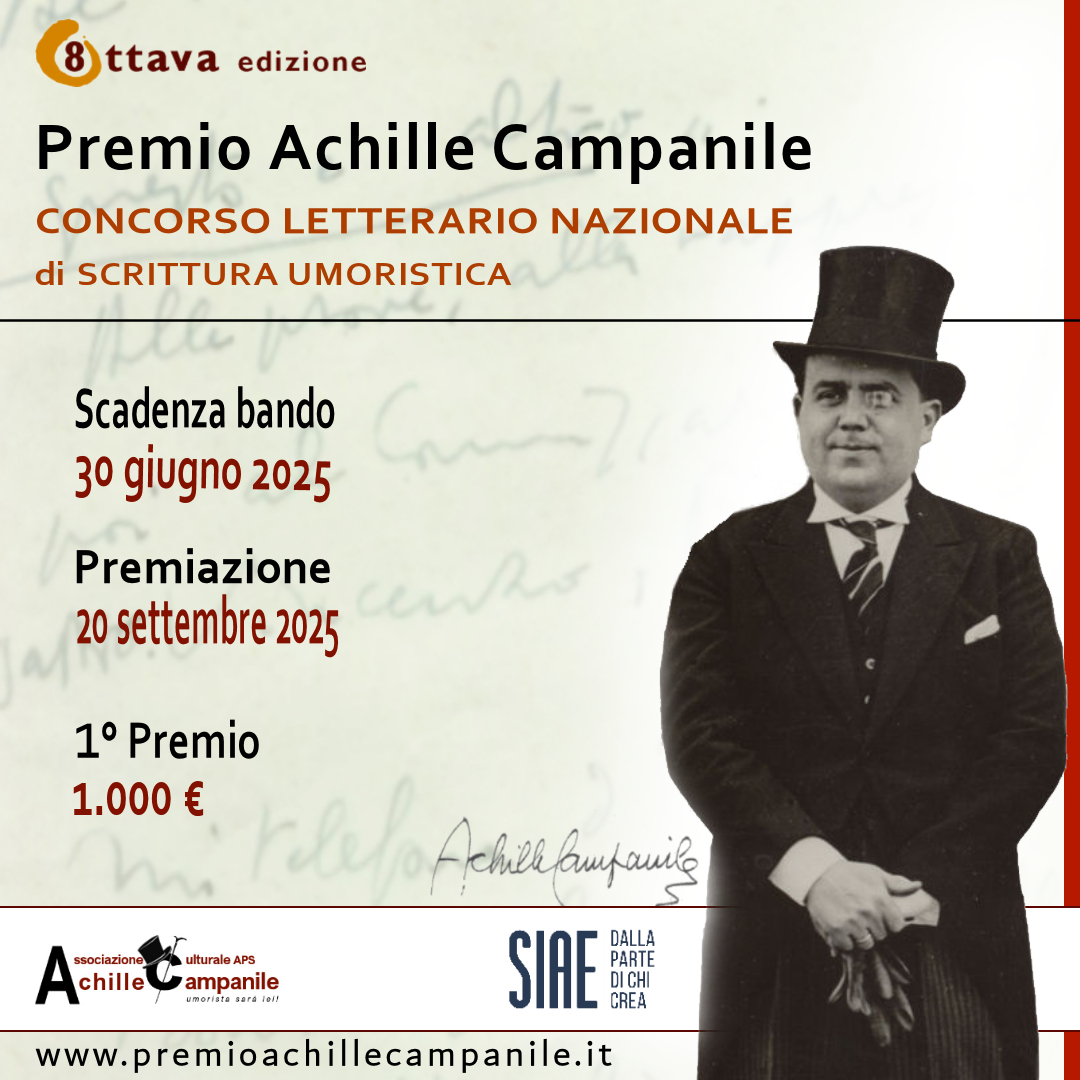 organizza l’ VIII Edizione del PREMIO LETTERARIO NAZIONALE DI SCRITTURA UMORISTICA “ACHILLE CAMPANILE”