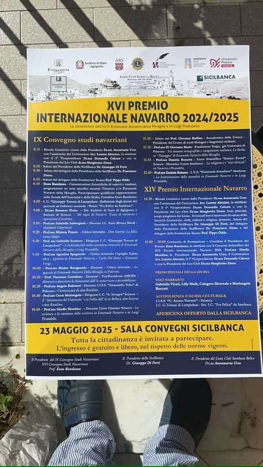 Inviate una copia dei vostri testi editi a XVII Premio Internazionale Navarro 2026, c/o Randazzo Enzo, Corso Umberto I, 159 – 92017 – Sambuca Di Sicilia; una copia in Word dei testi editi e gli inediti a navarropremio@yahoo.com, entro il 15 aprile 2026. I testi non verranno restituiti.