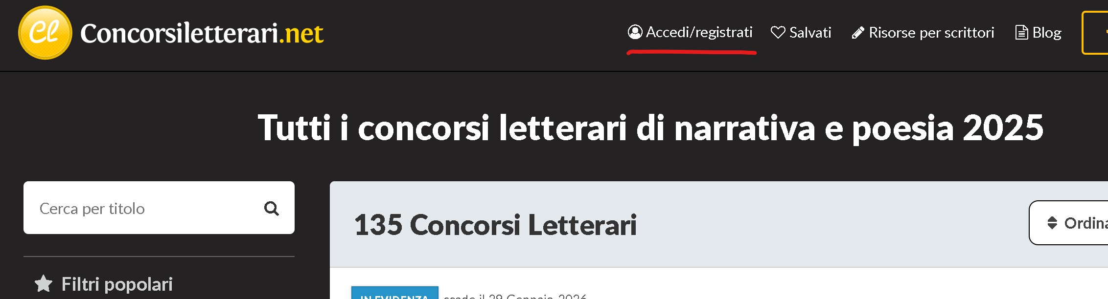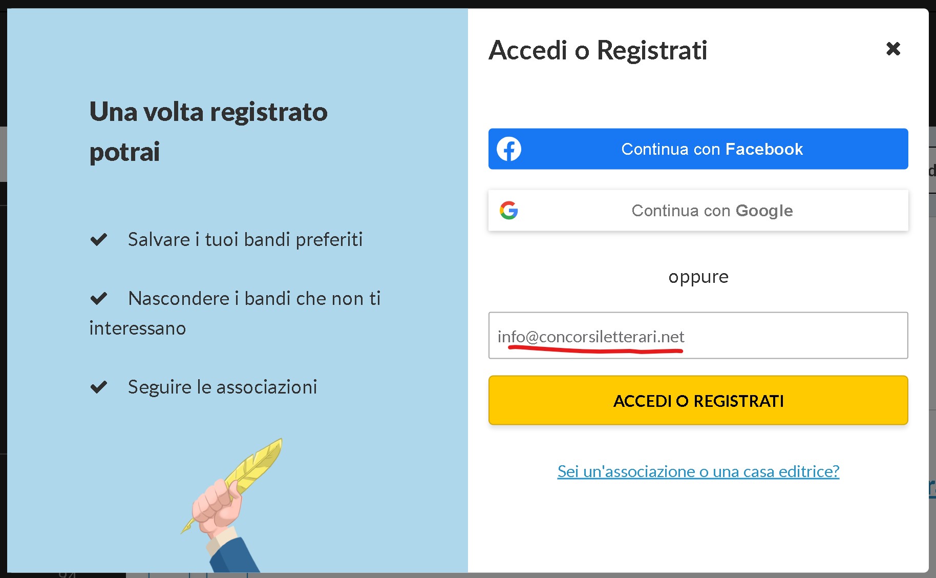 cerca “Concorsi Letterari” nella barra di ricerca del tuo client email