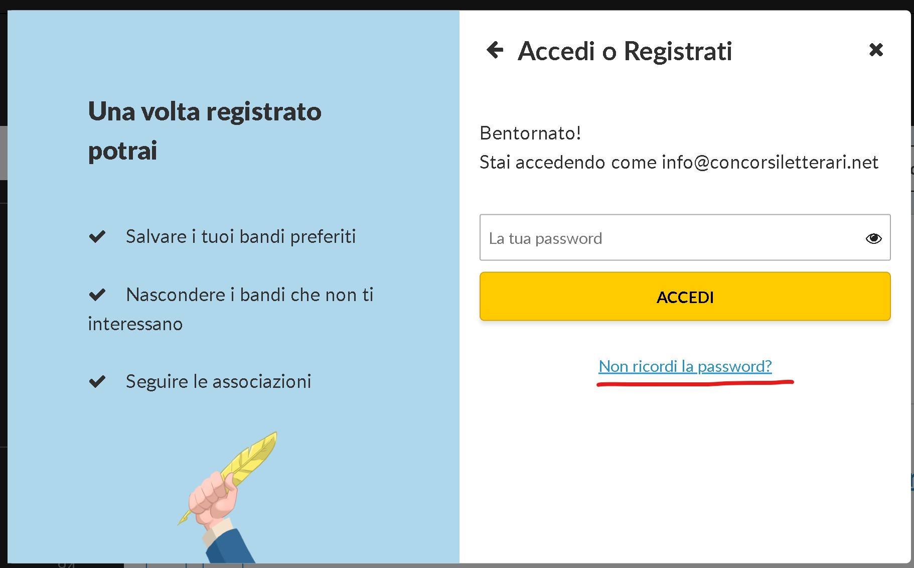 3. Clicca su “Non ricordi la password”